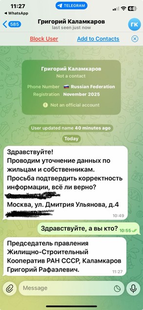 В настоящее время неустановленными лицами от имени Председателя Правления ЖСК Каламкарова Григория Рафаэлевича производится массовая рассылка в домовые чаты с требованием предоставить персональные данные.